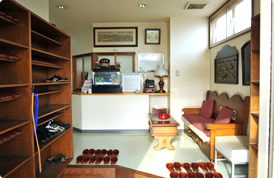 受付のある玄関ホールです。大きな集合靴箱がありますので、外靴はこちらでスリッパに履き替えて頂きます。